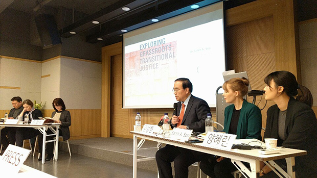 전환기정의워킹그룹(TJWG)이 26일 '풀뿌리 전환기 정의를 위한 탐색: 북한 인권침해 책임추궁에 관한 탈북민들의 견해' 세미나를 열고, 지난 4년간 탈북민 451명을 대상으로 진행한 설문조사 결과를 발표하고 있다.